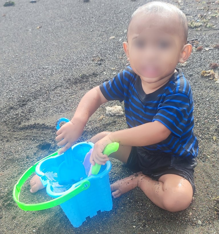 Fun at the beach for this kid.