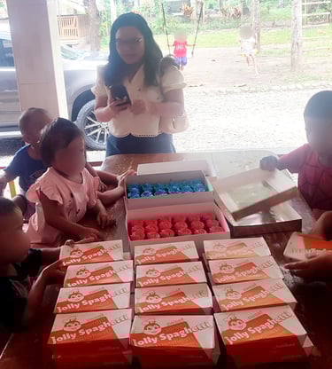 Also, thanks to Ajet Jane from Mati for bringing delicious Jollibee spaghetti for all our kids and staff on Sunday afternoon, along with yummy cupcakes and brownies.