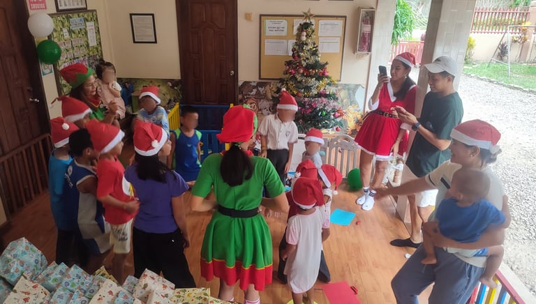 Santa arrived early in Angel House, thanks to the Morente family from Davao! We loved all the costumes to go along with the Christmas theme, and the kids enjoyed the parlor games with wonderful prizes. They also provided a delicious lunch of Jollibee, spaghetti, chocolate cake and drinks for all the children and staff. Then it was time for the grand entrance of Santa with gifts for all the children, along with party bags filled with candy treats. Thanks Morente family for making it a very special Christmas memory for everyone in Angel House.
