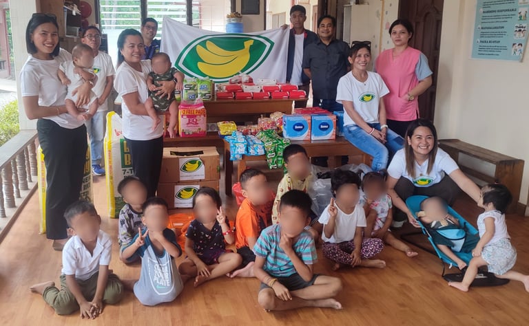 Today we had more visitors, first was a group from the Tadeco/Anflo company, who export bananas to many countries. They donated gifts for the children as well as essential items for Angel House, including plenty of bananas! They also provided a delicious Jollibee meal for all the children and staff.